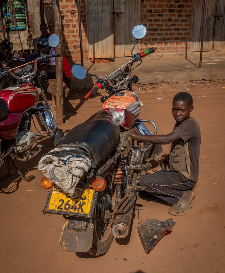 Our model is built on the "Climate-Mind Nexus," understanding that mental distress and a lack of opportunity are intertwined crises. For David, the solution wasn't forced reintegration into a system that failed him. It was a dignified alternative. We engaged a local motorcycle mechanic, a respected craftsman in the Bukamba community. After understanding David's situation, he didn't hesitate. He agreed to take the boy on as an apprentice. The PurpleMinds Foundation committed to contributing to the training fee, transforming a barrier into an opportunity.