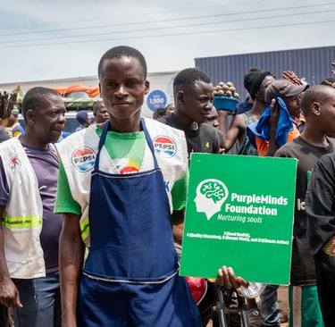 Traders spoke about the challenges of daily life, the stress of sustaining businesses, and the importance of community support. In return, we shared how PurpleMinds works to nurture souls, whether through mental health circles, water access projects, or skills training for youth.