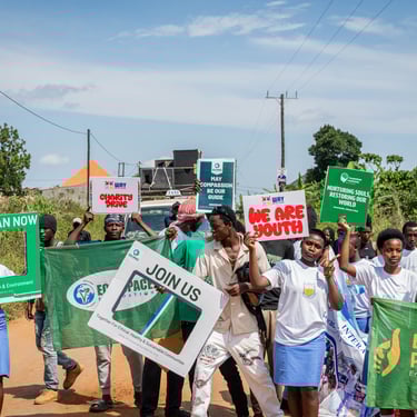 Before reaching the main venue, the trail brought us through Lukaya, a bustling trading center where PurpleMinds took the opportunity to step off the path and connect with local traders. We shared our mission—the "Climate-Mind Nexus" that links mental health, environmental care, and community resilience—and listened to their stories.